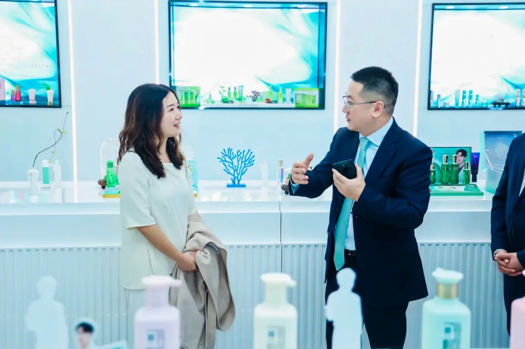 签约仪式现场,百雀羚集团CEO苗耀杨与恩和生物CEO崔好分别代表企业致辞,宣布合作顺利启幕,双方将共谱美妆科研新篇章。