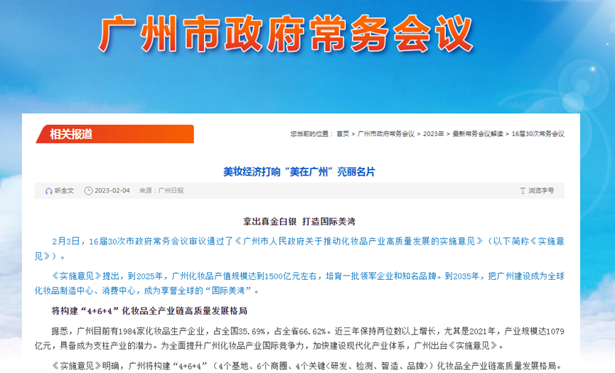 为了实现这些目标,广州还计划打造“4+6+4”(4个基地、6个商圈、4个关键<研发、检测、智造、品牌>)的化妆品全产业链高质量发展格局。